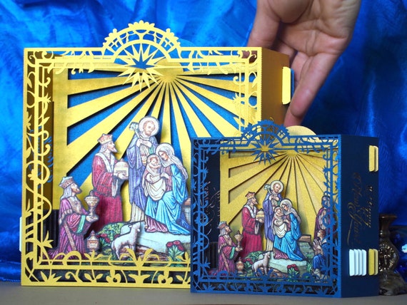 Weihnachtliche Pop up Karte. Krippe Heilige Krippe. Jesus Gott