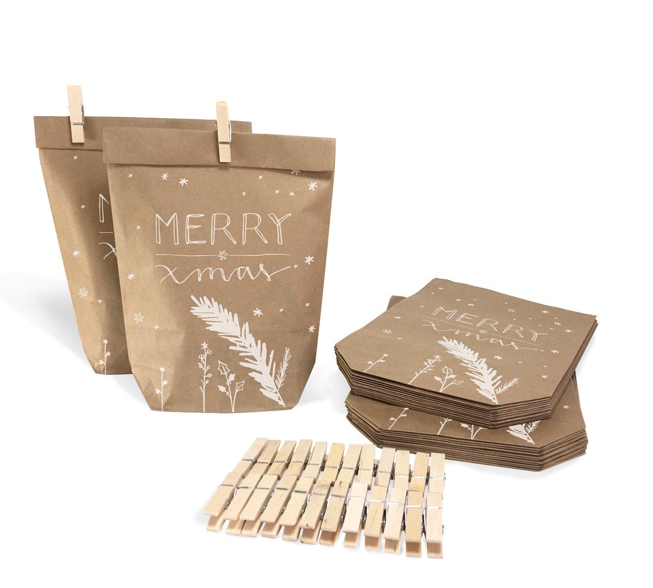 24 Gift Bags Merry Xmas Christmas Bags as Wrapping Paper Etsy