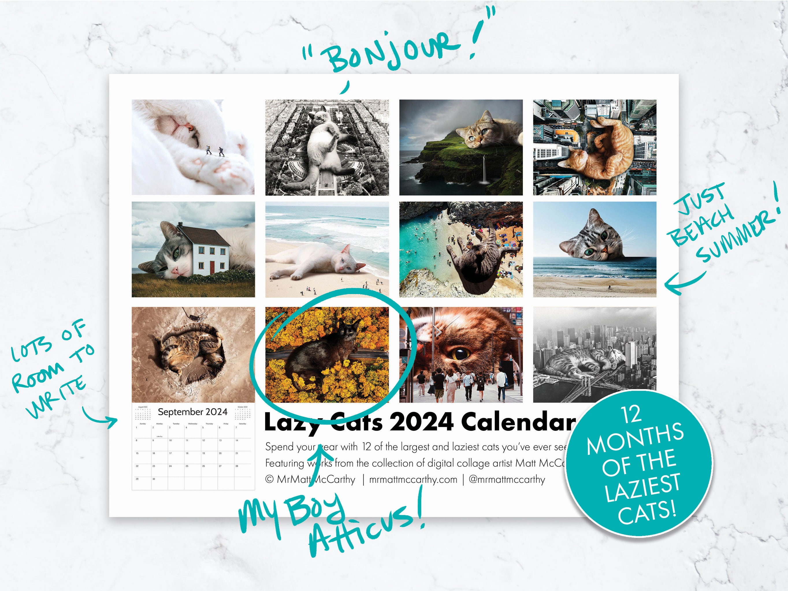 LAZY CAT CALENDAR 2024 Cat Wall Calendar Original Cat Art Etsy
