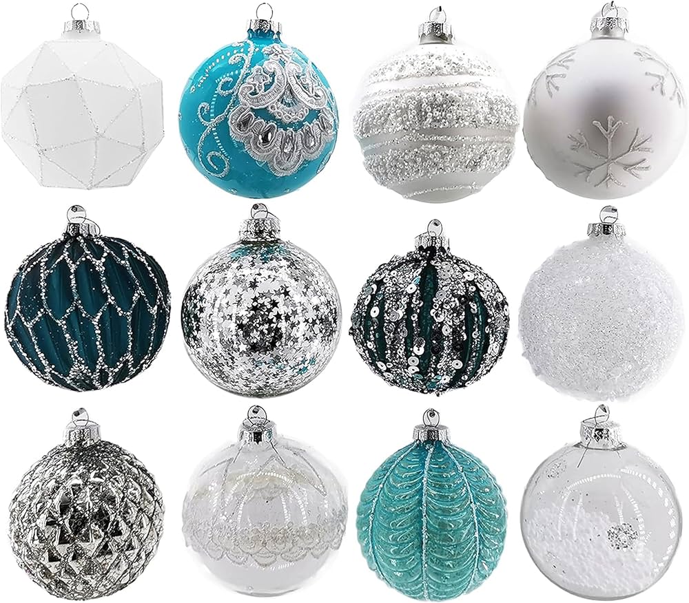 Amazon.de: 12 TLG. Glas Weihnachtskugeln Set in ‘Ice Petrol Türkis
